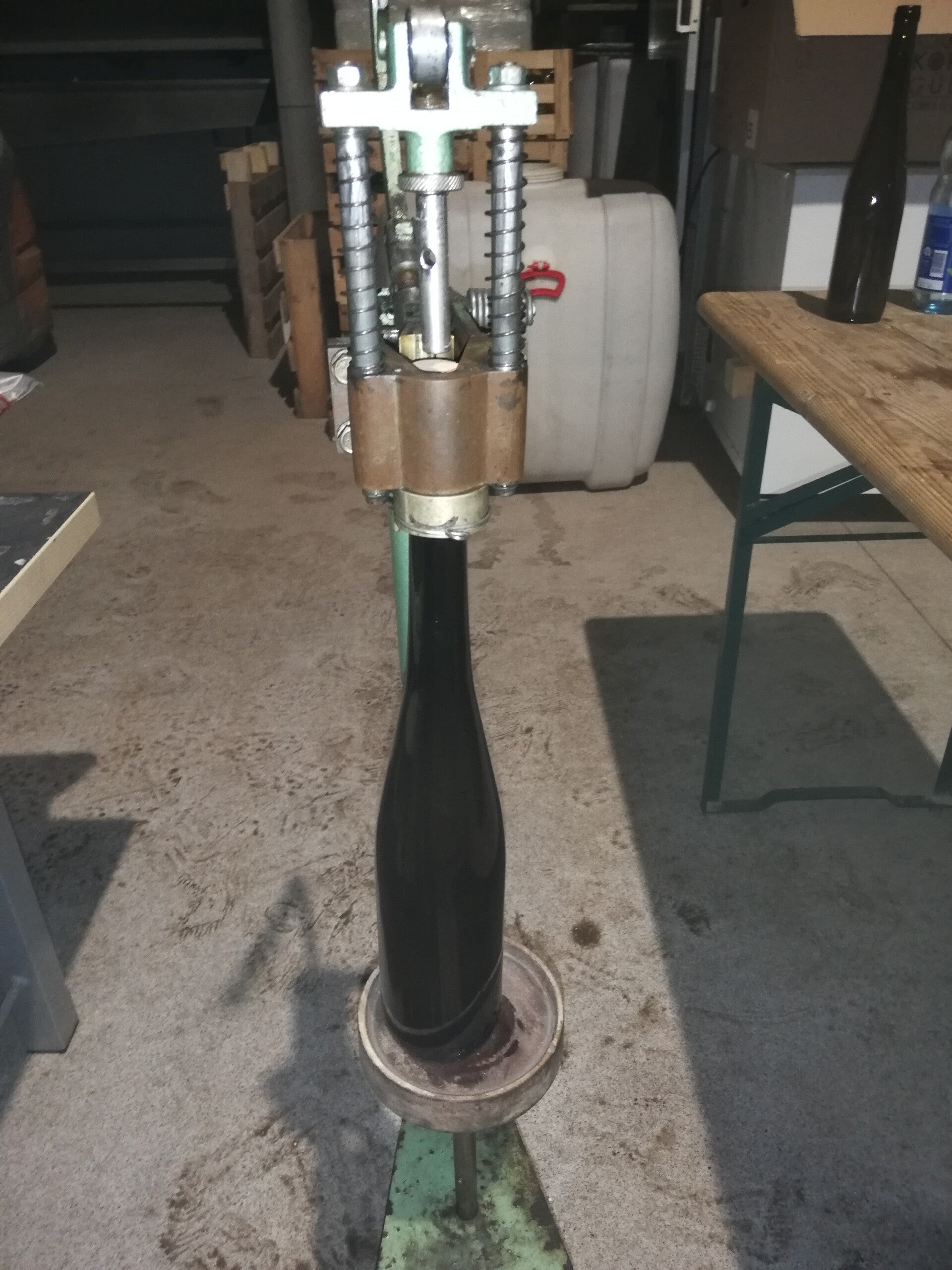 Bei der Abfüllung dieser limitierten Rarität wurde mit sehr tatkräftig geholfen, meine sehr lieben Freunde aus der Pfalz von der Pfälzer-Weinbruderschaft waren damit beschäftigt die Flaschen im Rundfüller zu befüllen und im Anschluss von Hand zu verkorkten und mit einem grünen Wachs der Firma Sengl-Pridt aus Österreich versiegelt. Um das Etikett vor Schäden und Schmutz zu schützen wurde die Flasche mit einer grünen Flaschenseide der Firma Wieckert aus Landau verpackt.